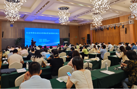 為應對日益復雜國際經貿形勢,提升我市外貿企業風險防范能力,6月14日,在省商務廳和威海市商務局指導下,協會與威海市海外發展協會聯合舉辦全市進出口企業應對國際貿易摩擦培訓會,全市近200名外貿企業代表參會。